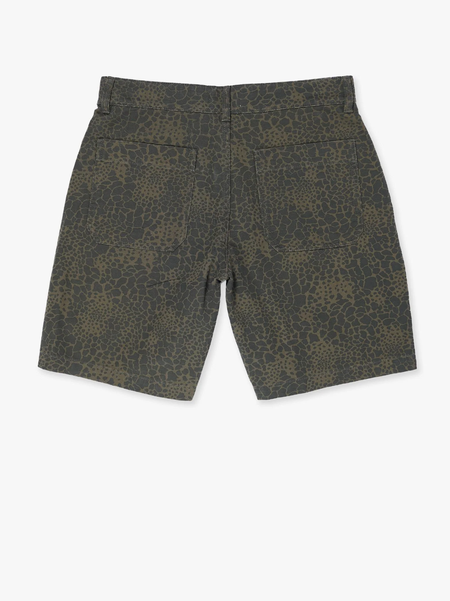 The new Aware shorts a moderate wide fit with work details. Cut from a soft, 100% organic cotton fabric in our signature olive puma camo. Zip fly and button closure, patch pockets at back.