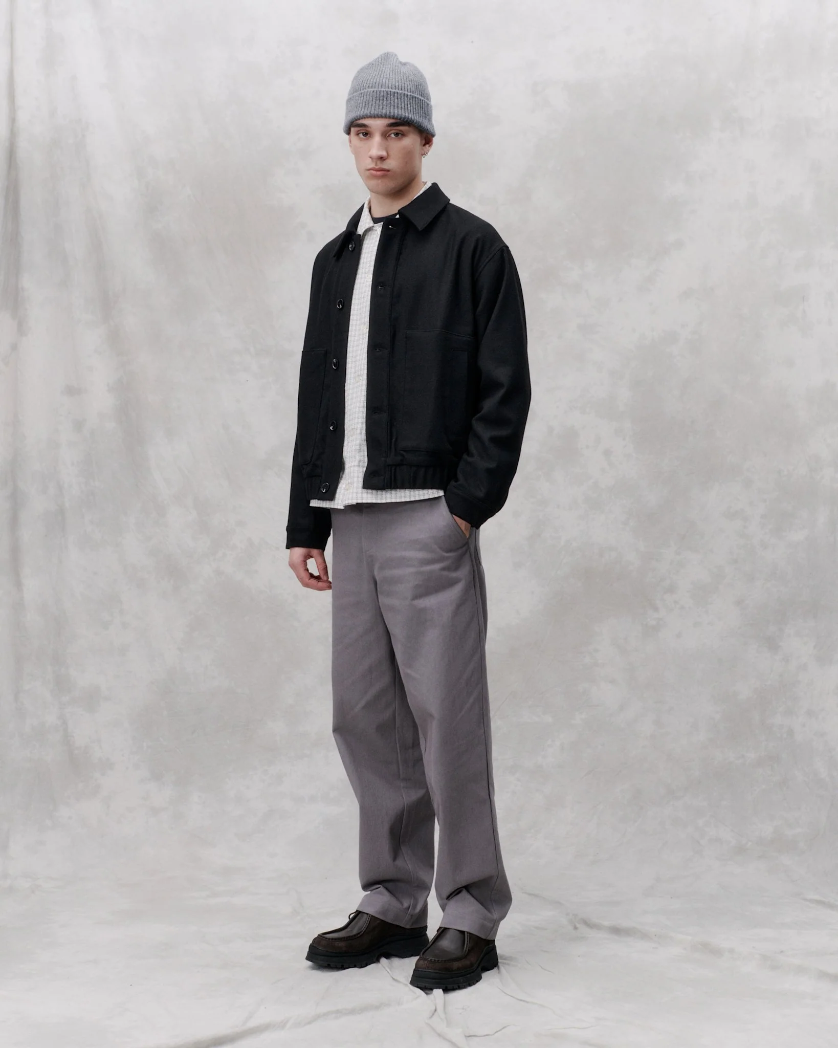 Cut from a soft wool mix. The Blunt style features collar, paspel pockets and elastic bottom. This unlined trans-seasonal jacket provides a lighter and more comfortable look.