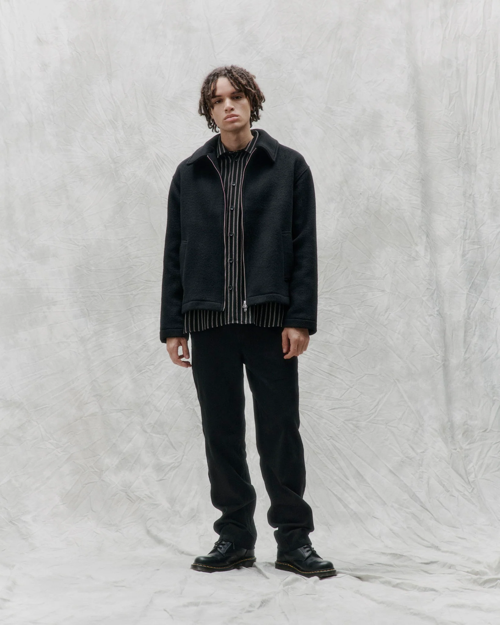 The Lunar jacket has dropped shoulder, wide collar, paspel pockets and zipper closure. Cut from high quality subtle Italian blend, fully lined and featured with MEIDA thermo insulation.