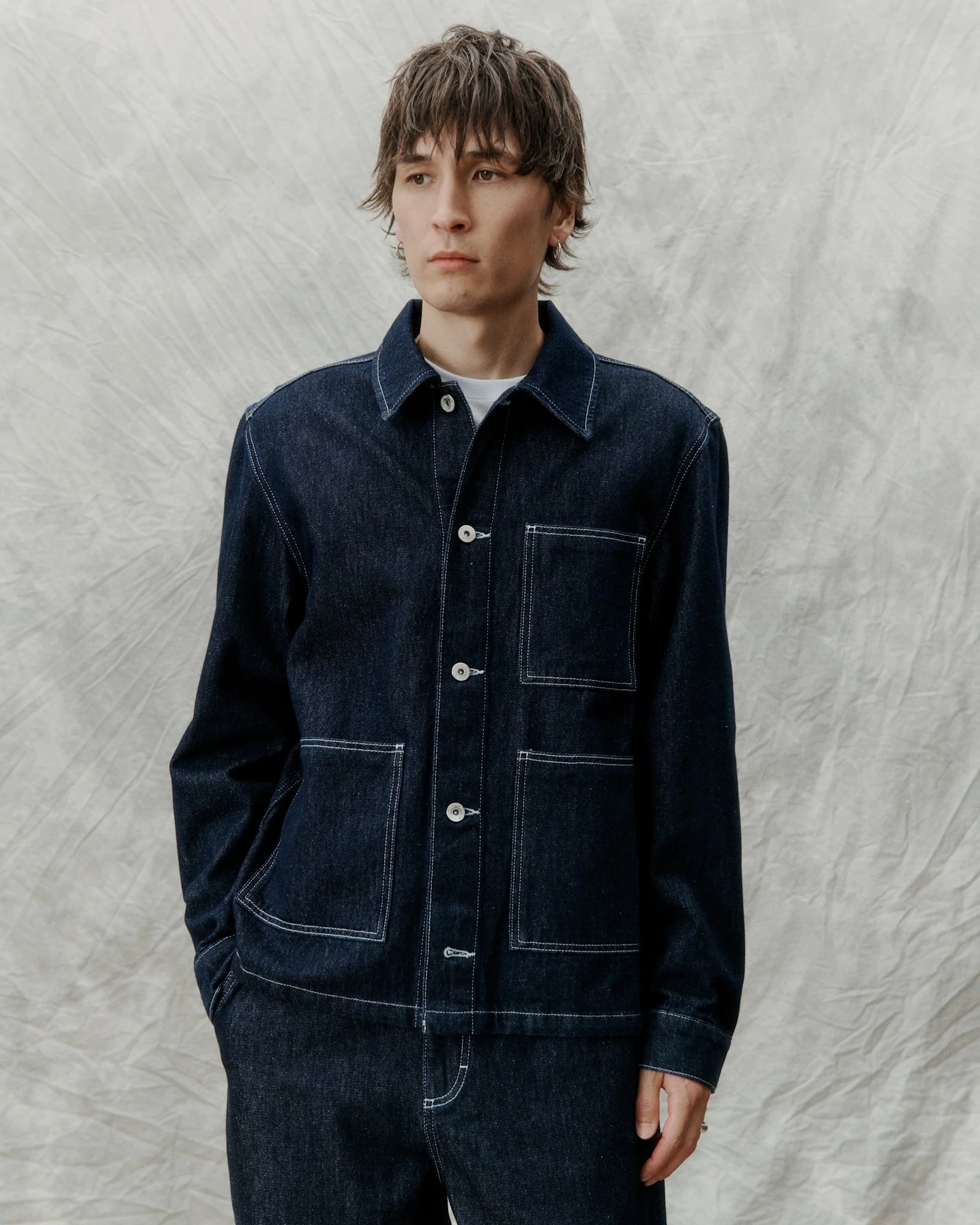 Our take on Park Wear. A work inspired jacket made from a denim twill weave. The Jacket features jeans button closure & patch pockets.