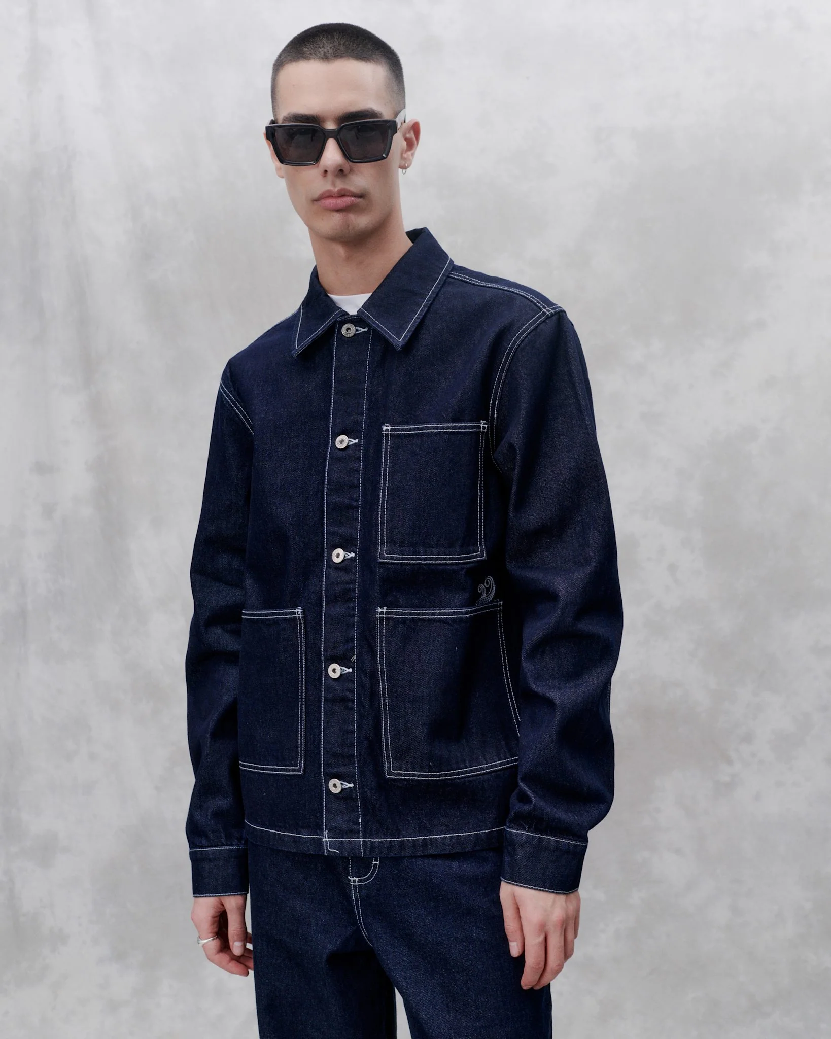 Our take on Park Wear. A work inspired jacket made from a denim weave fabric. The Jacket features jeans button closure & patch pockets.Ā