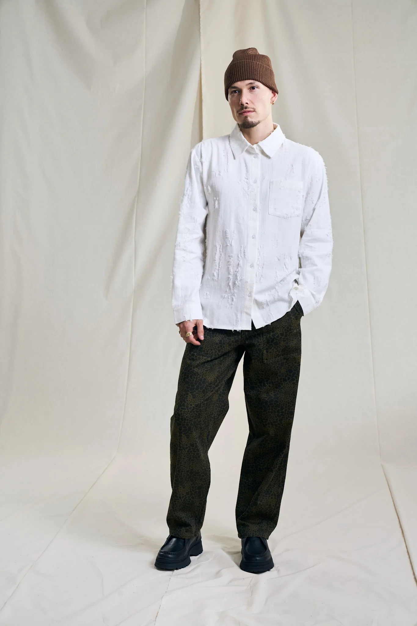 A clean, generously fitted shirt with stitchless placket and collar. Cut from a soft, signature āfil de coupeā fabric giving the shirt a distinct torn look. Button closure on placket and cuffs.Ā